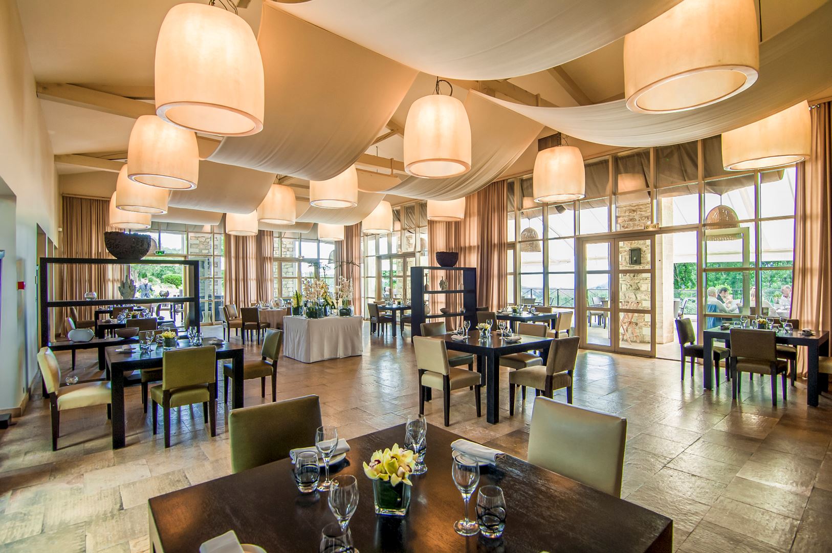 På den store terrasse ved klubhuset samles medlemmer og gæster for at nyde godt af kokkens fremragende arbejde. Man kan spise i den udsøgte restaurant eller på den møblerede terrasse, og bagefter nyde en drink i hotellets bar.