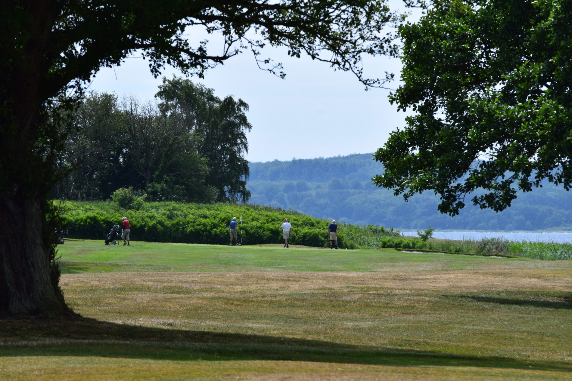 Mange golfspillere har her fået bløde knæ, når de står næsten ude i fjorden og skal drive på hul 16.