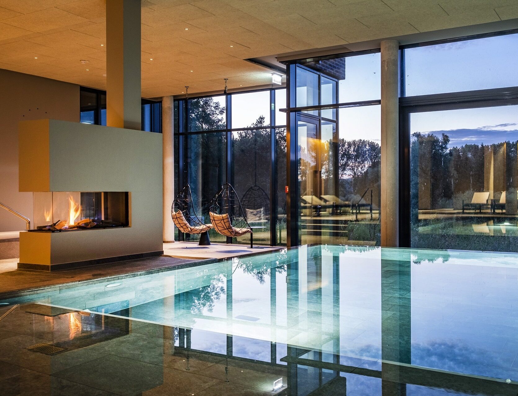 Panoramavinduerne ved poolen kan åbnes, så det føles som en udendørs pool.