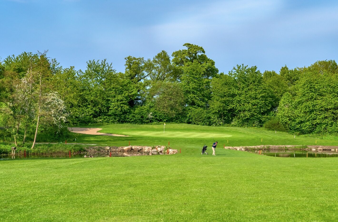De mange vandhazarder, de strategisk rigtigt placerede bunkers og de interessante greens garanterer en meget afvekslende runde golf.
