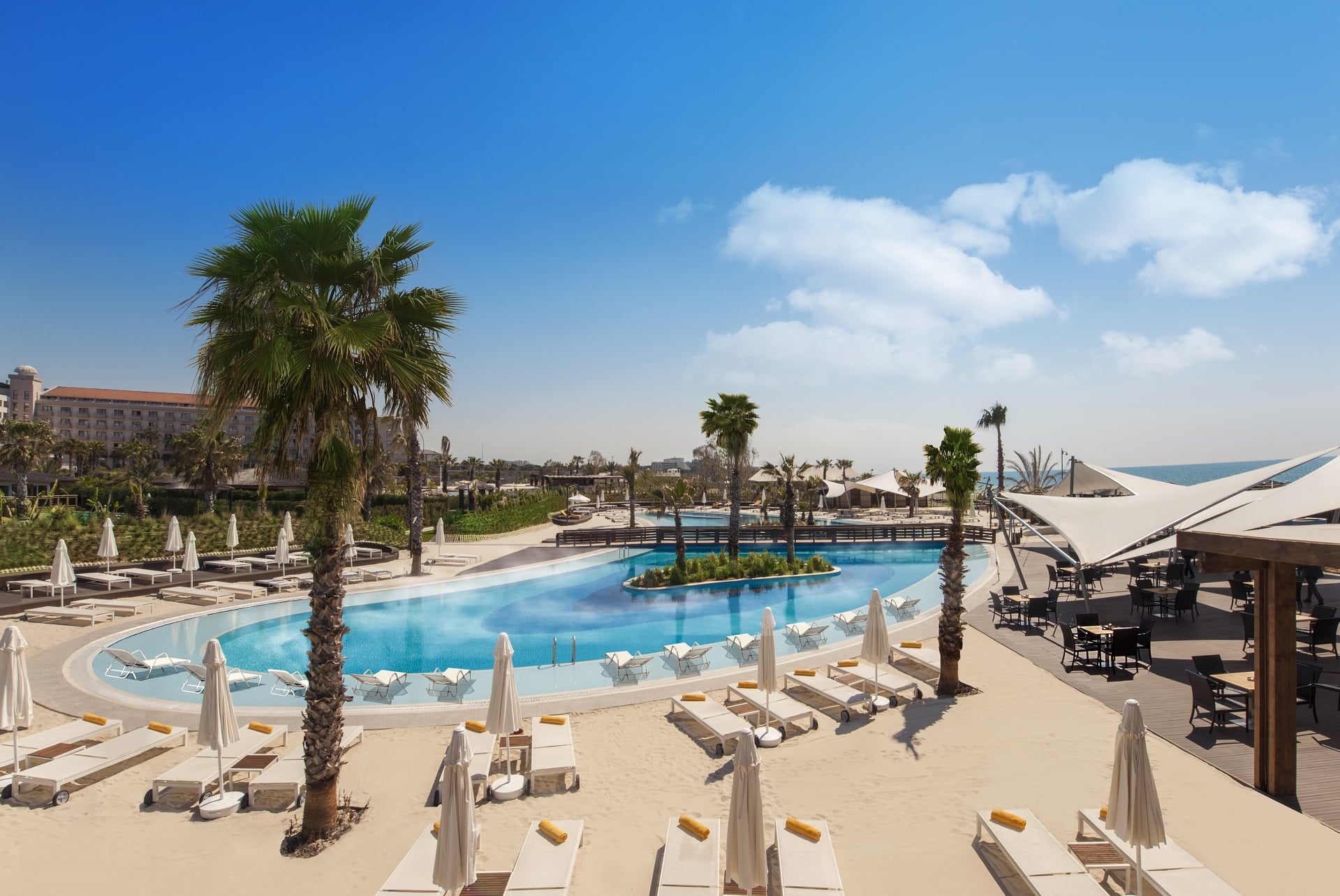 Her får du elegante og moderne værelser, flere lækre restauranter og barer samt et stort og moderne spaområde med pools, sauna, jacuzzi og tyrkisk bad.