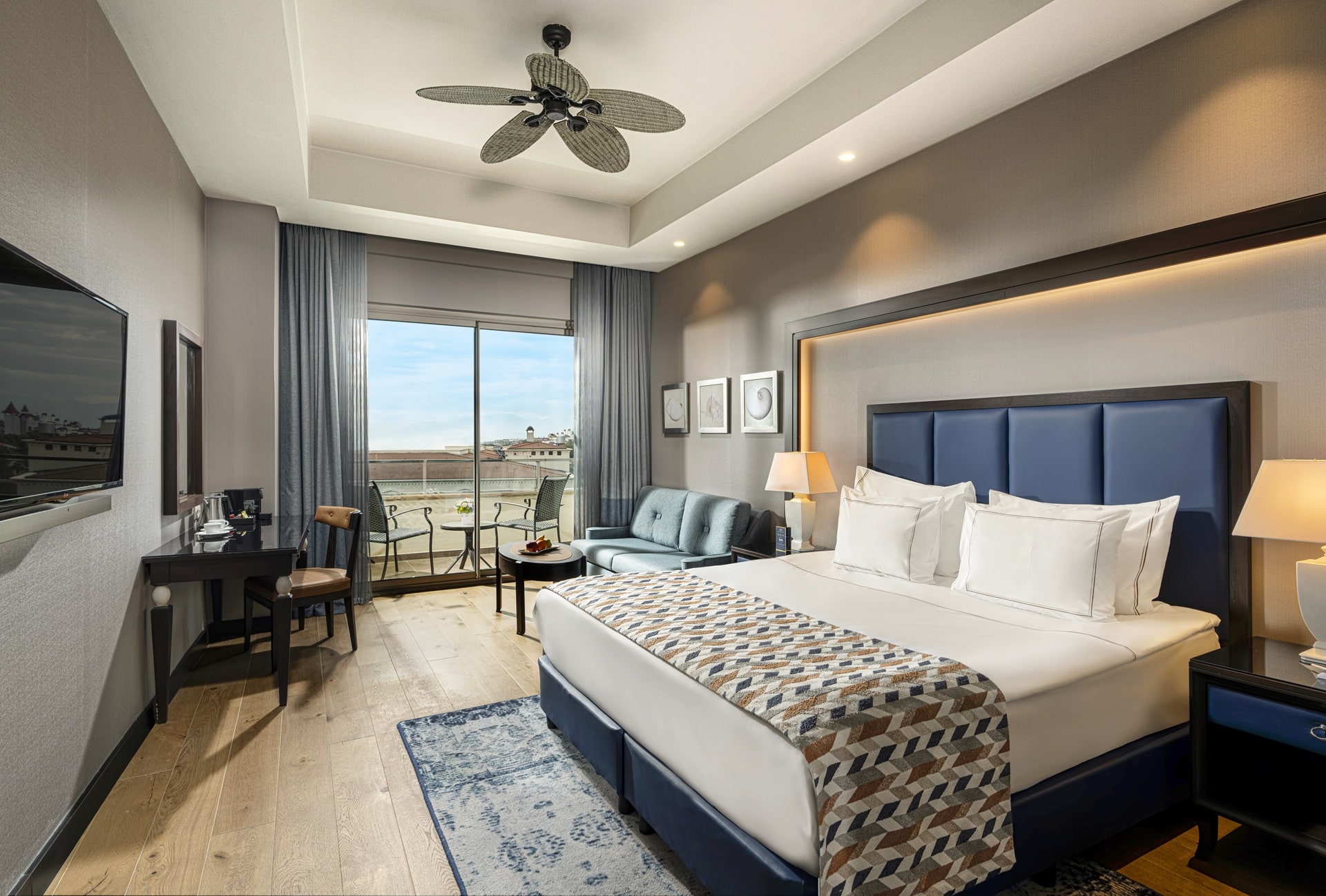 Superior Sea View værelser har en skøn udsigt til Middelhavet og poolen.